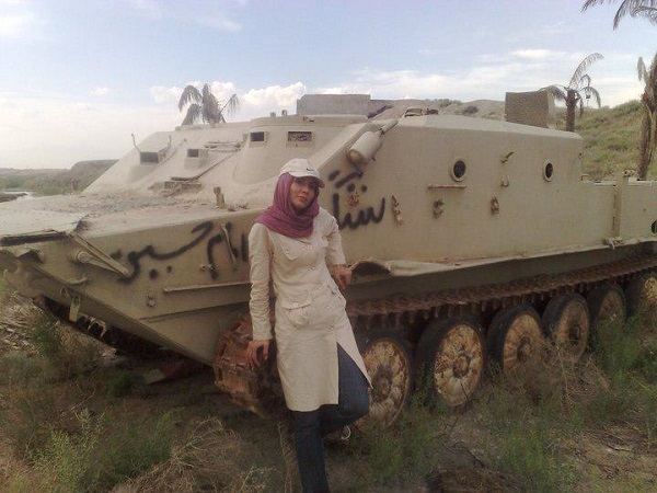 مهشید افشار زاده بازیگر و کارگردان سینمای ایران در پشت صحنه یکی از فیلم هایش با این تانک جنگی عکس گرفته است.