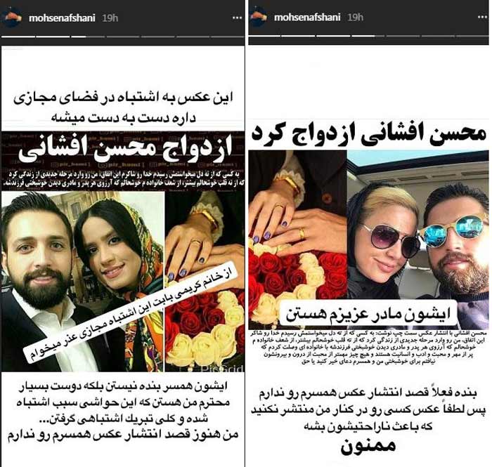 روزنو :فردا: محسن افشانی در استوری اینستاگرام خود در مورد شایعات انتشار عکس همسرش در فضای مجازی مطالبی را منتشر کرد.