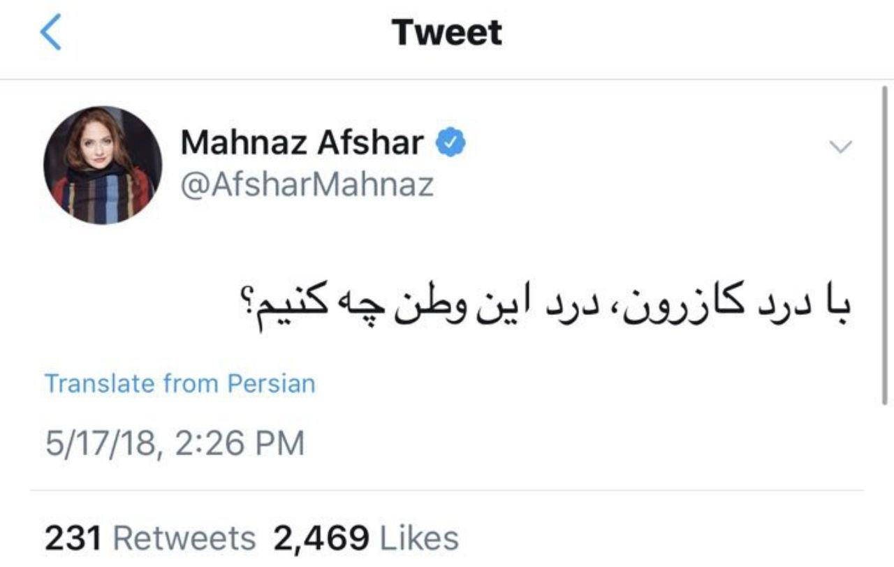 واکنش مهناز افشار به حوادث کازرون