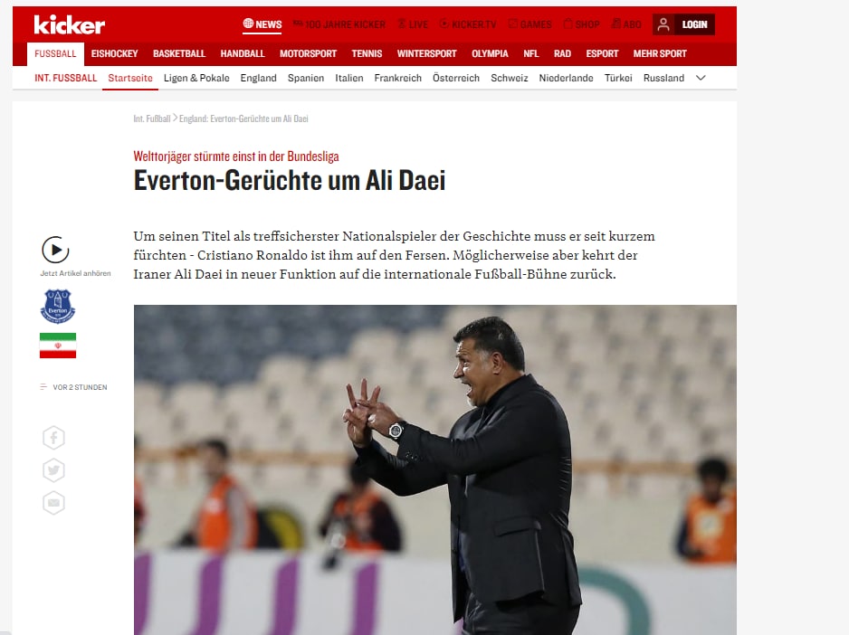 ، علی دایی که بعد از پایان همکاری با سایپا به دلایلی عجیب طی ماه‌های اخیر مجبور به دوری از فوتبال بوده، اکنون طبق ادعای نشریه آلمانی کیکر، در آستانه بازگشت به فوتبال و البته همکاری با باشگاه اورتون انگلیس قرار دارد.