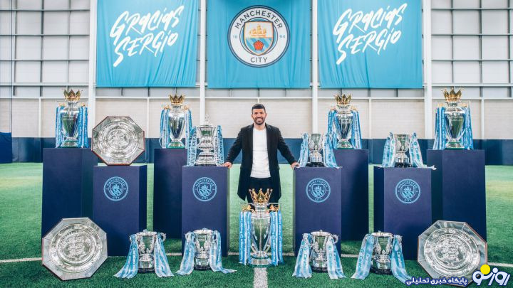 روزنو :در تصویری که باشگاه منچسترسیتی با توضیح "ممنون، سرجیو آگوئرو" منتشر کرده، ستاره آرژانتینی در مقابل آرم باشگاه منچسترسیتی و پانزده جامی که در این باشگاه انگلیسی گرفته، عکس گرفته است.