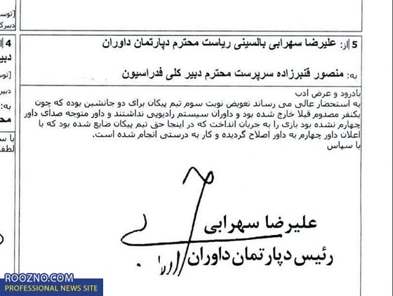 ۲- بعد از شکایت باشگاه استقلال، دپارتمان داوری در نامه‌ای رسمی که در پیوست قابل مشاهده است، اعلام کرد تخلفی انجام نشده و شکایت باشگاه استقلال وارد نیست.
