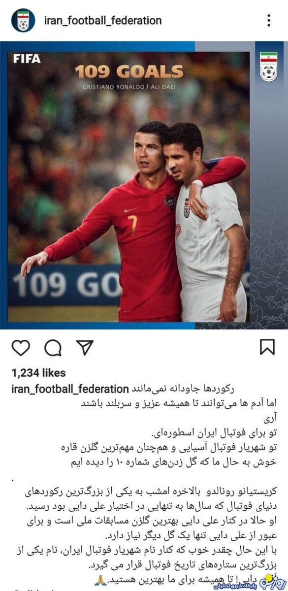 واکنش‌های جهانی گل دوم رونالدو مقابل فرانسه که او را ۱۰۹ گله کرد و در کنار علی دایی مهاجم آتشین سال‌های گذشته فوتبال ملی ایران قرار داد را می‌بینید: