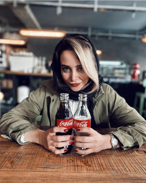 عکس هنری الناز حبیبی با شیشه نوشابه کوکاکا