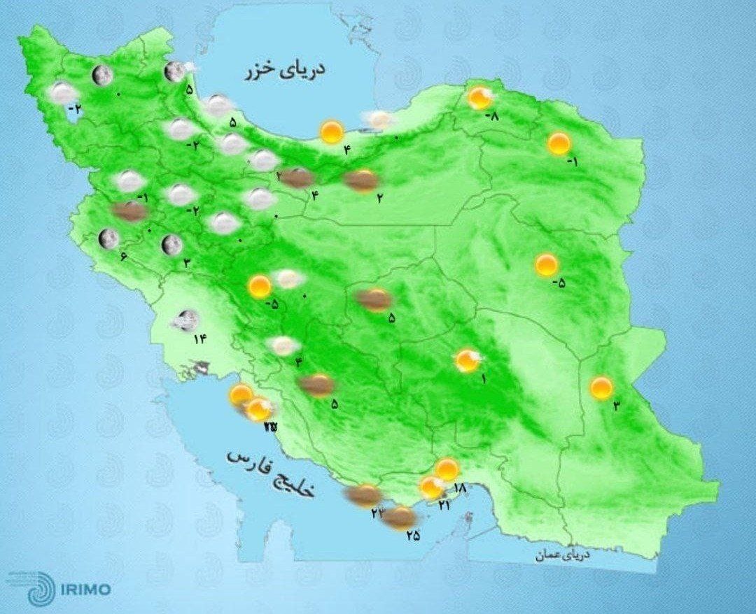 بر اساس نقشه‌های پیش یابی هواشناسی، اوایل وقت امروز شنبه، در مناطق صنعتی و پرجمعیت انباشت آلاینده‌ها و کاهش کیفیت هوا انتظار می‌رود. از بعد از ظهر امروز با ورود سامانه بارشی از جنوب غرب کشور در بخش‌هایی از خوزستان و چهار محال و بختیاری، کهگیلویه و بویر احمد، بوشهر، ایلام و لرستان بارش باران همراه با رعد و برق و وزش باد شدید موقت و در ارتفاعات بارش برف پیش‌بینی می‌شود.