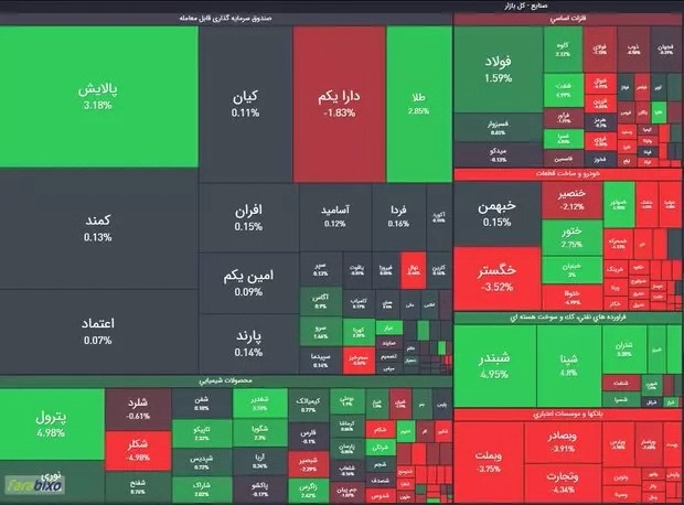 همچنین «شستا» و «فسبزوار»، «فولاد»، «پترول»، «شبندر»، «شپنا» و «انرژی ۳» نیز از نمادهای پرتراکنش در بازار امروز بودند.
