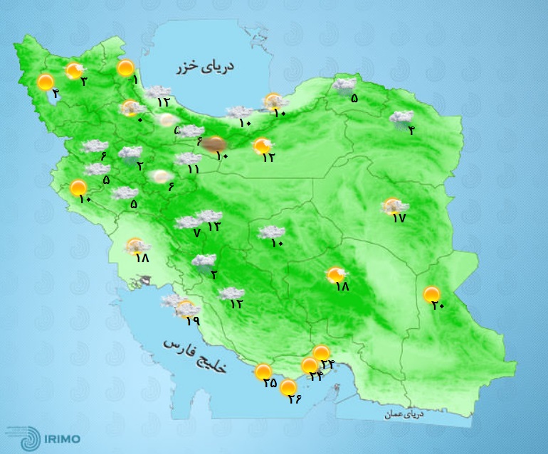 وضعیت آب و هوا، امروز ۲۳ بهمن ۱۴۰۰