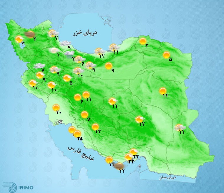 وضعیت آب و هوا، امروز ۲۸ بهمن ۱۴۰۰