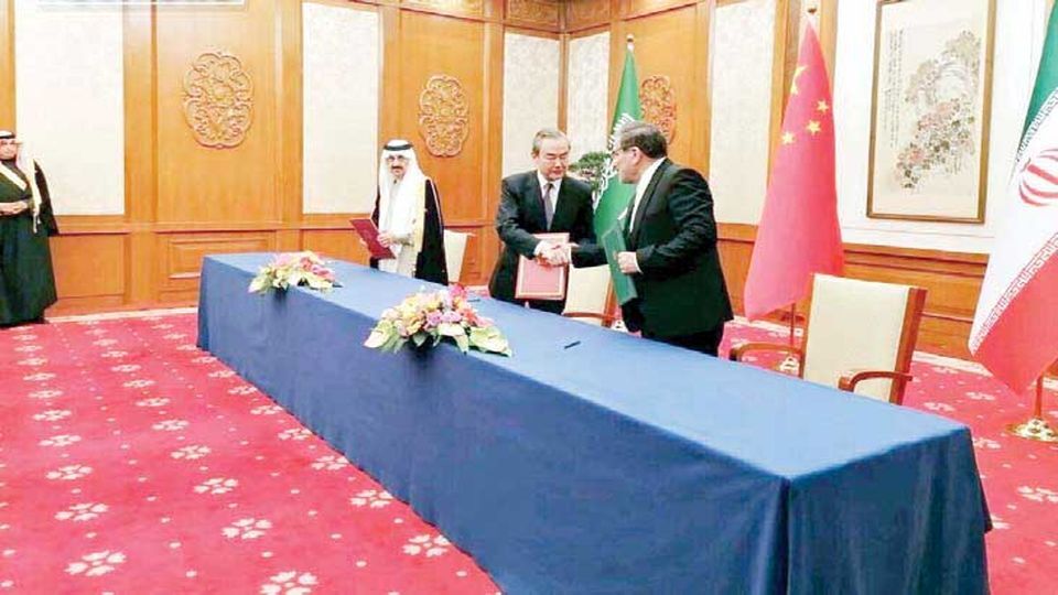 پس از انجام چند روز مذاکرات فشرده میان دبیر شورای عالی امنیت ملی کشورمان با همتای سعودی خود در شهر پکن، روز جمعه توافق حاصلشده برای ازسرگیری روابط میان دو کشور، در مراسمی با امضای بیانیه مشترک میان ایران، عربستان سعودی و چین بهصورت رسمی اعلام شد. به دنبال سفر بهمنماه سیدابراهیم رئیسی به پکن و گفتوگوهای انجامشده میان رئیسجمهوری چین با رئیسجمهوری کشورمان، دریابان شمخانی از روز دوشنبه ۱۵ اسفند در شهر پکن با هدف پیگیری توافقهای سفر رئیسجمهور، مذاکرات فشردهای را بهمنظور حلوفصل نهایی موضوعات میان تهران-ریاض با همتای سعودی خود آغاز کرد.