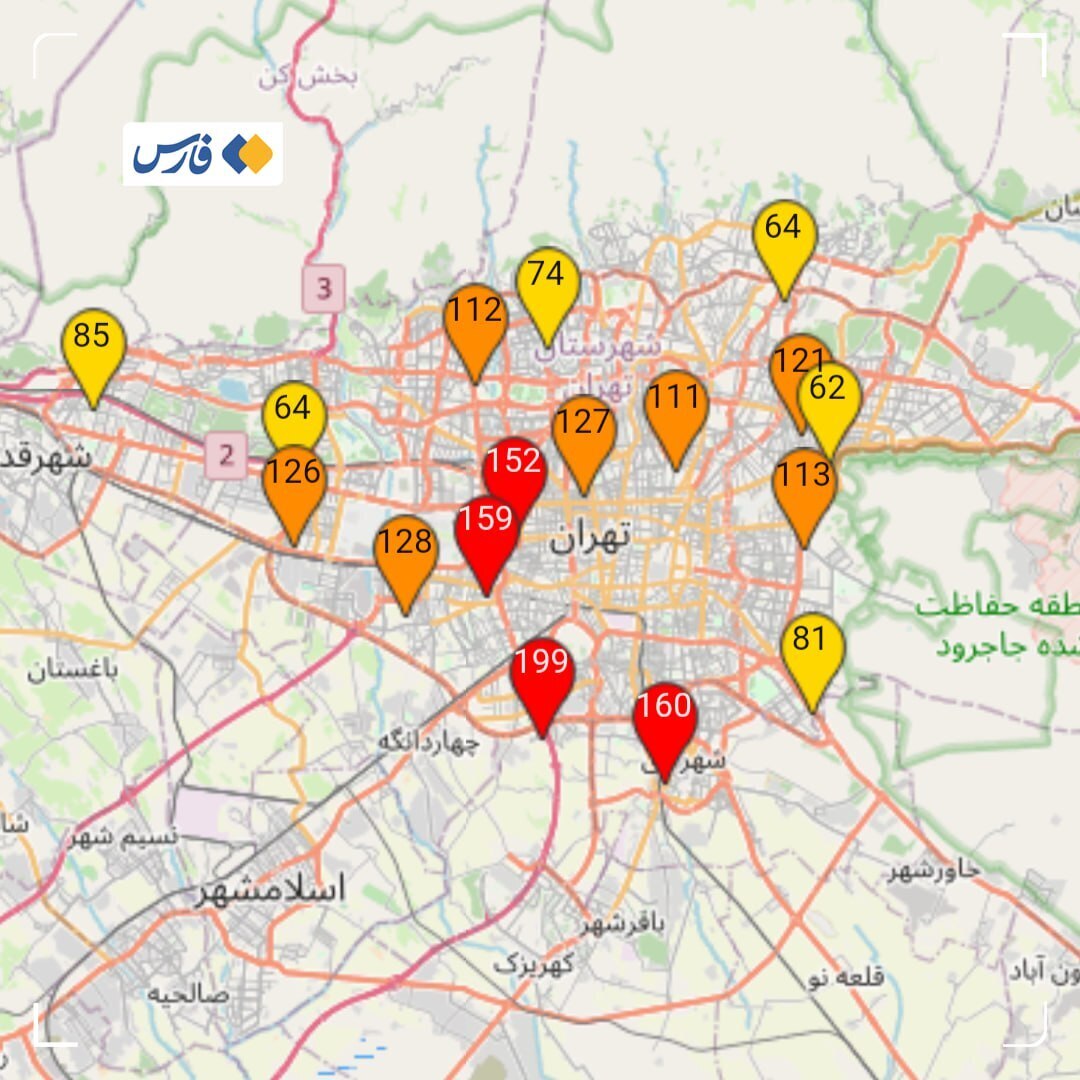 شاخص آلودگی هوای منطقهٔ ۱۹ تهران با رسیدن به عدد ۱۹۹ در مرز وضعیت خطرناک قرار دارد.