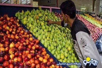 مهر نوشت:هر کیلو گرم آلو زرد ۵۰ تا ۸۹، آلو سیاه ۹۸ تا ۱۲۰، انگور ۶۸ تا ۱۷۸، سیب گلاب ۷۰ تا ۱۳۹، گیلاس ۷۰ تا ۲۳۰، زردآلو ۶۸ تا ۱۹۸، هلو ۵۷ تا ۸۸، گلابی ۱۹۸ تا ۴۰۰، توت فرنگی ۷۹ تا ۸۸، پرتقال جنگلی ۷۹، شلیل ۶۵ تا ۹۸، گوجه سبز ۱۷۸ و آلبالو ۶۰ تا ۱۲۵ تومان است.