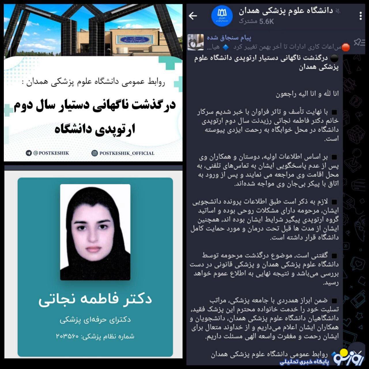روزنو :فاطمه نجاتی، رزیدنت دوم ارتوپدی دانشگاه علوم پزشکی همدان، بر اثر فشارهای شدید تحصیلی، کاری و خانوادگی، به زندگی خود پایان داد. این حادثه تلخ که موجی از واکنش‌ها در فضای دانشگاهی و رسانه‌ای برانگیخت، به عنوان نمونه‌ای از مشکلات عمیق سیستم آموزشی و فشارهای تحصیلی مطرح شده است.