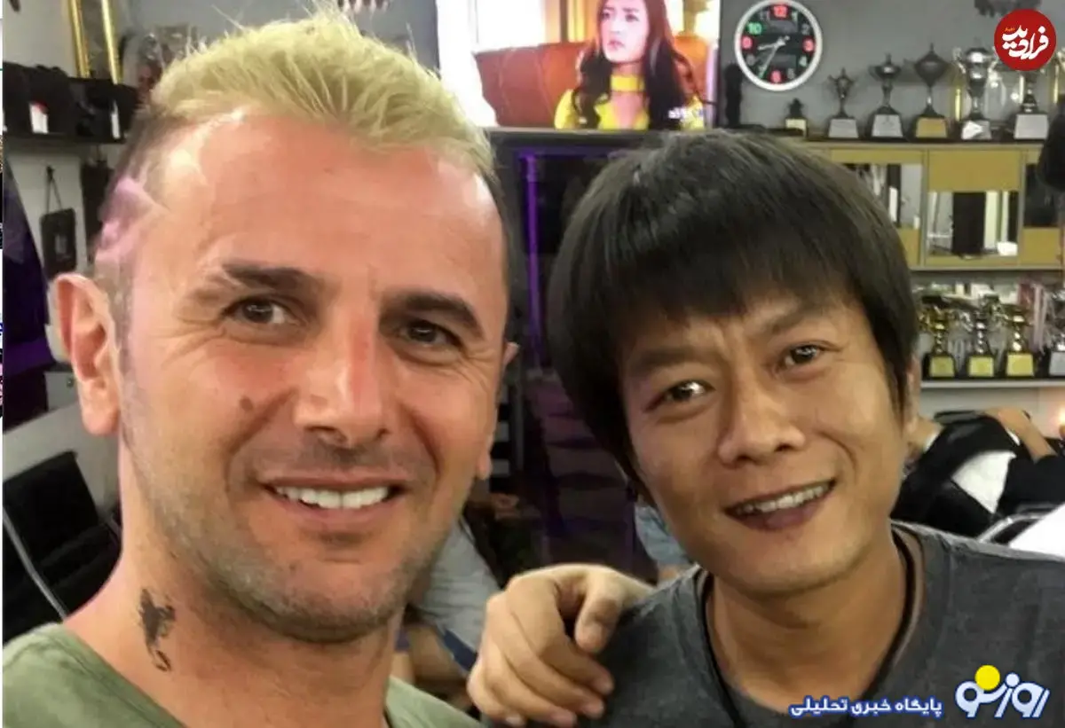 امین حیایی و پسرش دارا در اتاق گریم فیلم شعله‌ور