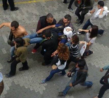 در شهر ساحلی ازمیر یکی از معترضان برای اینکه از دست پلیس خود را رها کند با چاقو تهدید به خودکشی کرد و پلیس هم برای اینکه جلوی او را بگیرد سعی در نجات او می کند که در این بین یکی دیگر از معترضان اسحله اش را گرفته و فرار می کند.